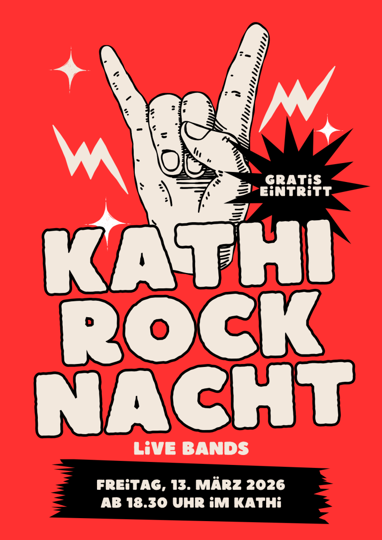 Am Freitag, 13. März 2026, geben wir Vollgas und begeben uns auf eine aufregende Reise durch die Welt der Rockmusik. An diesem Abend sind sowohl unsere grossartigen Kathibands als auch Ensembles von anderen Schulen mit von der Partie. Macht euch bereit für ein Rockspektakel!